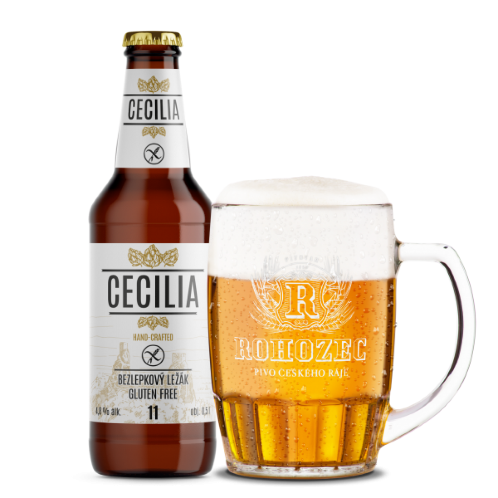 Cecilia je světlý bezlepkový ležák 11°, vařený klasickým českým způsobem, ale upravený tak, aby obsahoval méně než 10 mg/l lepku (gliadinu méně než 5 mg/l), tedy výrazně pod stanoveným limitem pro bezlepkové výrobky. Přesto si zachovává plnou chuť, vyváženou hořkost, jemné chmelové aroma a bohatou pěnu.